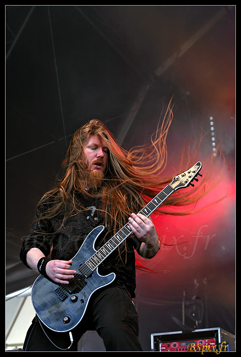 Fab: Could you tell us a little bit about the next album to come ? I think it would please My Dying Bride's fans a lot, because it's almost like a step back to, say, "As the flower withers" & "Turn loose the swans" but with a more up today production, with a "take and out" approach. So, many people, you know, the purists, might say "oh, it's just they're going back to old and ancient things", it could be … You may have some to accuse you of that, but it sounds good so we like it a lot. In that moment, we have 6 songs that are pretty much recorded, we don't have any keys on or anything on, no vocals, even most of the guitars. We go back after the show, and straight back into the studio this week to carry on. It's looking, unfortunately it's probably gonna be the beginning of next year that it gets released. We're struggling for time to actually get everything, I mean we could rush it and it wouldn't be right, so we'd rather wait. I really want today to achieve it but it's not gonna happen, we just can't do it. So it's there, it's definitely happening. Fab: So I guess it's too soon to talk about the cover artwork? So, let the artwork belongs to someone who will get, we got a few people working on various things, and they are ready for when the titles appears so they can mold it into, so it's been worked upon. Aaron's already in the mix and I am involved in the artwork as well, even if I don't physically do, I just tend to send notes, describing what I think it should be. So, it's on its way but again, nothing tangible. It's really difficult to say, but I'm sure it will be fine when it's done. I'm kind of excited about all of this process again. It seems a long time since we did "A line of deathless kings", seems an eternity ago. Spirit : In fact it's been a long time, and since it will take some more time before you'll release the (next) album, it'll be a real long time. Spirit : Sadly |