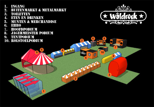 For its 21st edition, no less than 20 bands are on the bill : Slayer, My Dying Bride, 1349, Lordi, Queensryche, Morbid Angel and many more. Wow! But let’s start at the beginning. The Waldrock festival takes place in the small town of Bergum (Burgum) in the Netherlands. After a quick search on the internet, we decided to stay in Leeuwarden, larger and not too remote. So here we are after a 6 hours uneventful drive. Just the time of a stop by our hotel and we’re on our way to the festival. |